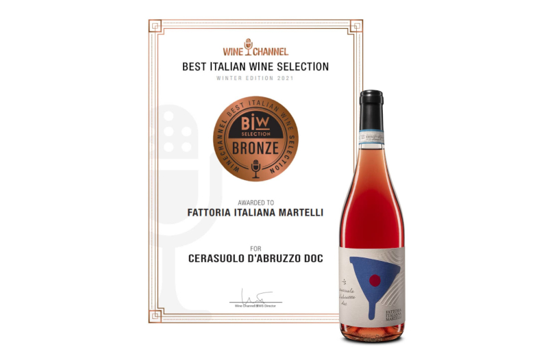 Il vino Cerasuolo d’Abruzzo DOC, vendemmia 2020, prodotto dalla Fattoria Italiana Martelli, è stato premiato con una medaglia di bronzo ed è entrato in una selezione di vini scelti da una giuria italo-cinese con l’obiettivo di introdurre questo vino nel mercato cinese.