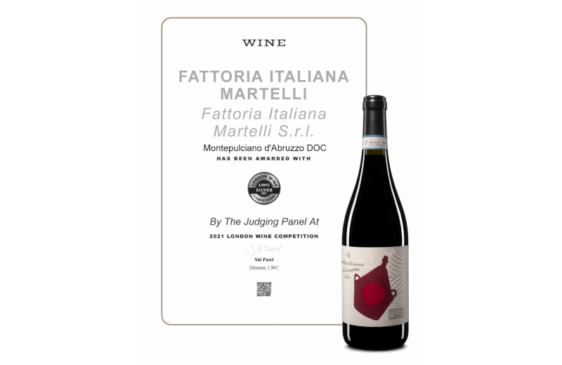 Il vino Montepulciano d’Abruzzo DOC, vendemmia 2018, prodotto dalla Fattoria Italiana Martelli, è stato premiato con una medaglia d’argento al London Wine Competition 2021, una delle più prestigiose manifestazioni enologiche internazionali che ha riconosciuto la qualità del nostro vino assegnando 78 punti.